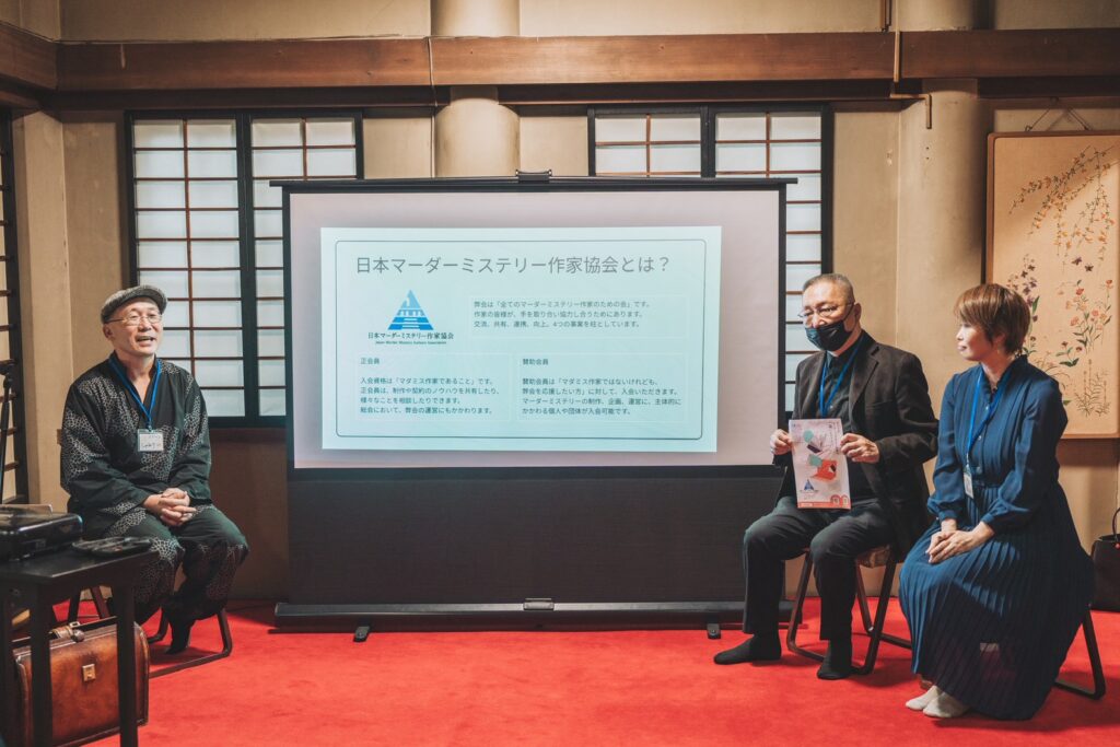 東京都江東区深川にあります陽岳寺様にて、マーダーミステリー交流会【マダミス縁】が開催されました。弊会はステージ登壇者として招待いただきました。登壇したのは、共同代表の3人です。 『日本マーダーミステリー作家協会 1年間の振り返り』をテーマに、この1年を年表で振り返りながら今まで、そして、これからについてを発表しました。